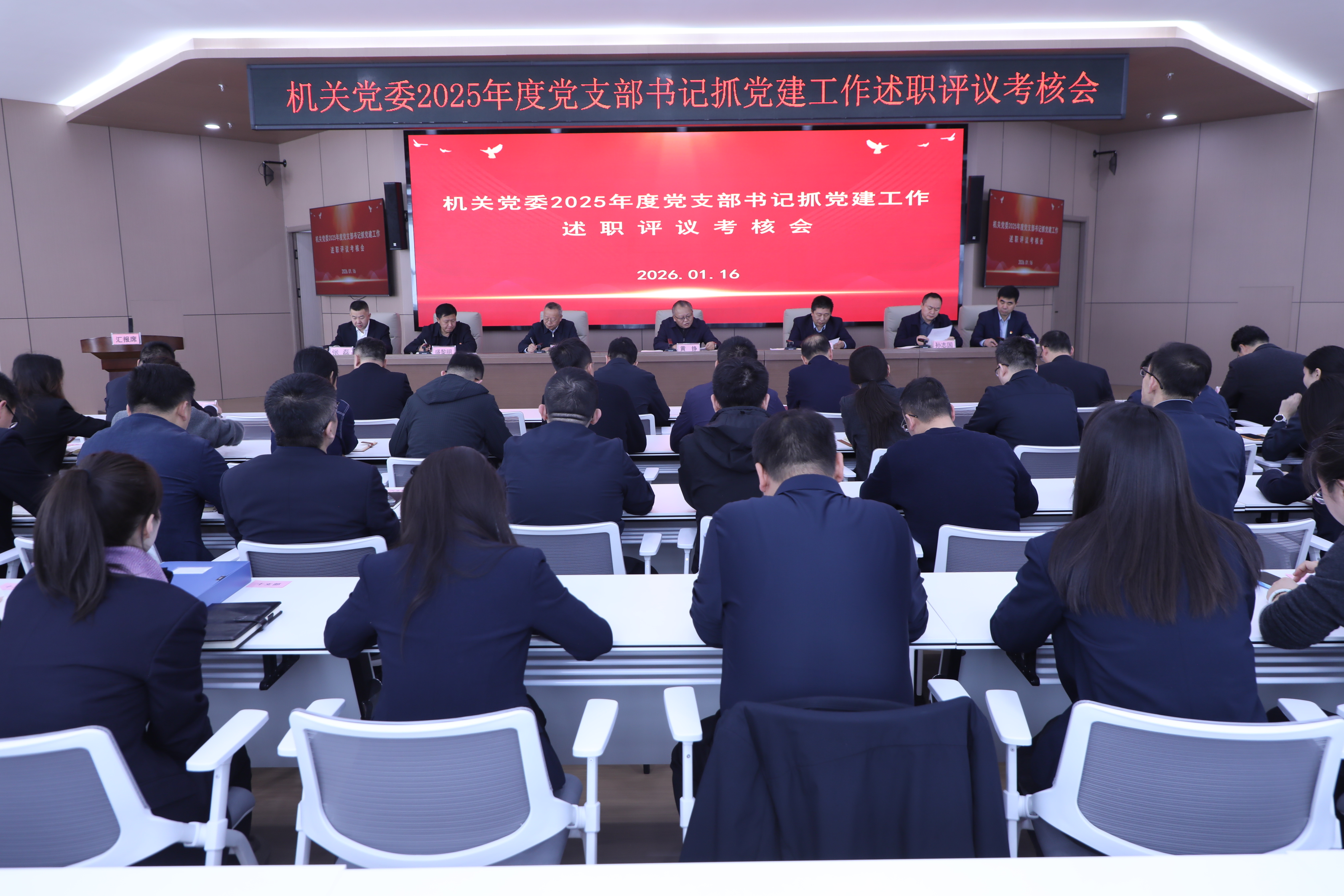 1月16日,机关党委召开2025年度党支部书记抓党建工作述职评议考核会。集团公司党委副书记、工会主席,机关党委书记黄铮主持会议,机关党委委员、党支部书记及支委成员、机关经理(主管)级人员参加会议。
