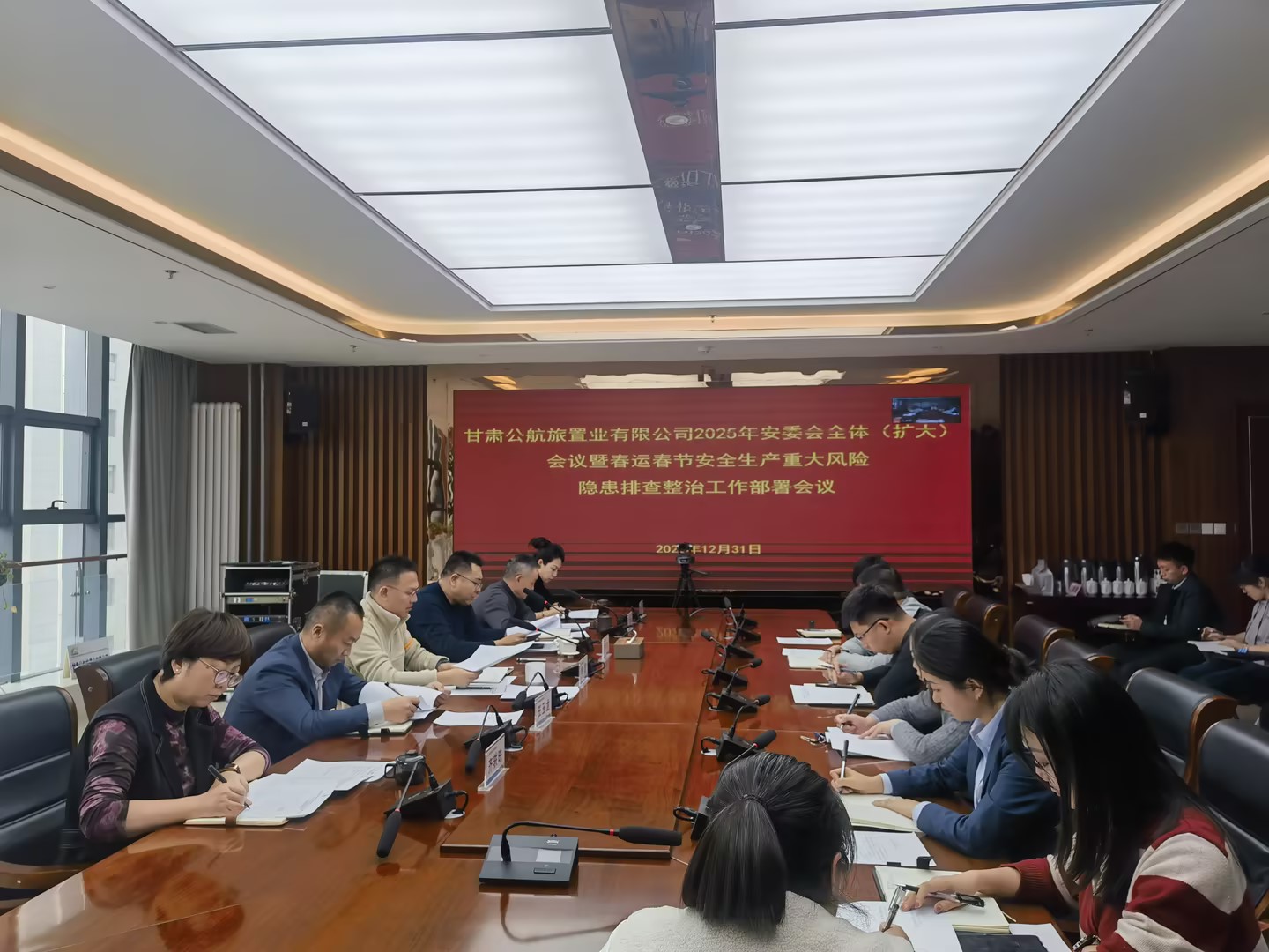 12月31日下午,置业公司召开2025年安委会全体(扩大)会议暨春运春节安全生产重大风险隐患排查整治工作部署会议,传达学习集团公司安委会全体(扩大)会议暨春运春节安全生产重大风险隐患排查整治工作部署会议精神,安排部署置业公司“双节”期间及2026年第一季度各项安全生产工作重点。公司党委书记、董事长、安委会主任杨凯主持会议,公司各领导、各部室负责人、各子公司负责人(视频)参加会议。