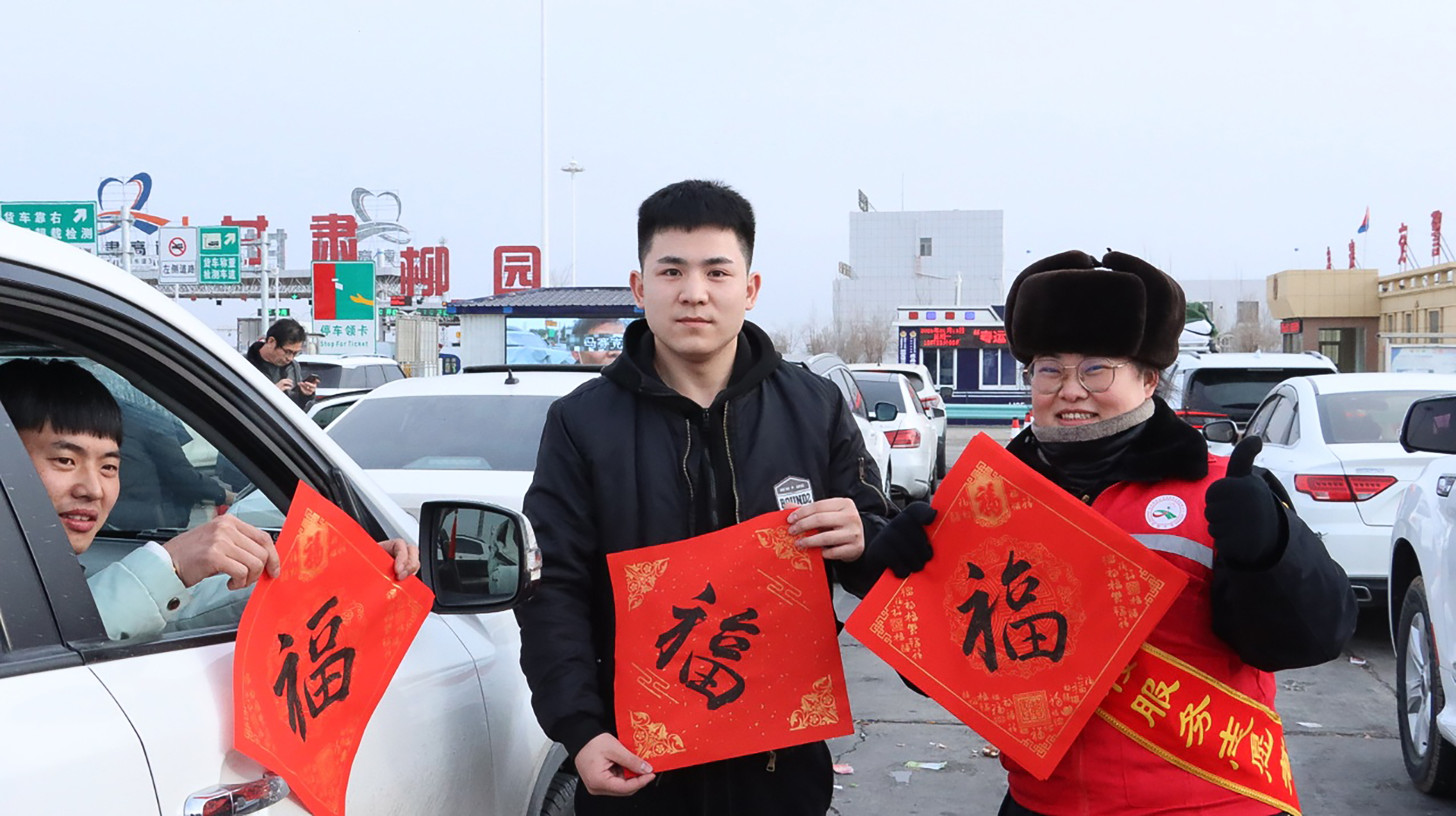 福伴旅途行,情暖归家路。在收费站广场,活动氛围同样热烈。工会职工们带着墨迹未干的春联、福字以及精美窗花,主动走向过往司乘人员,亲手递上新春祝福,轻声道上“祝您旅途平安,马年大吉”“策马赴新程,万事皆顺意”的暖心问候。这些承载着美好期许的新春礼物,不仅传递了公航旅高速人对广大司乘人员的诚挚祝福,缓解了旅途的疲惫与奔波,更让繁忙的高速公路运营养护一线,多了几分浓浓的年味、人情味与文化温度。