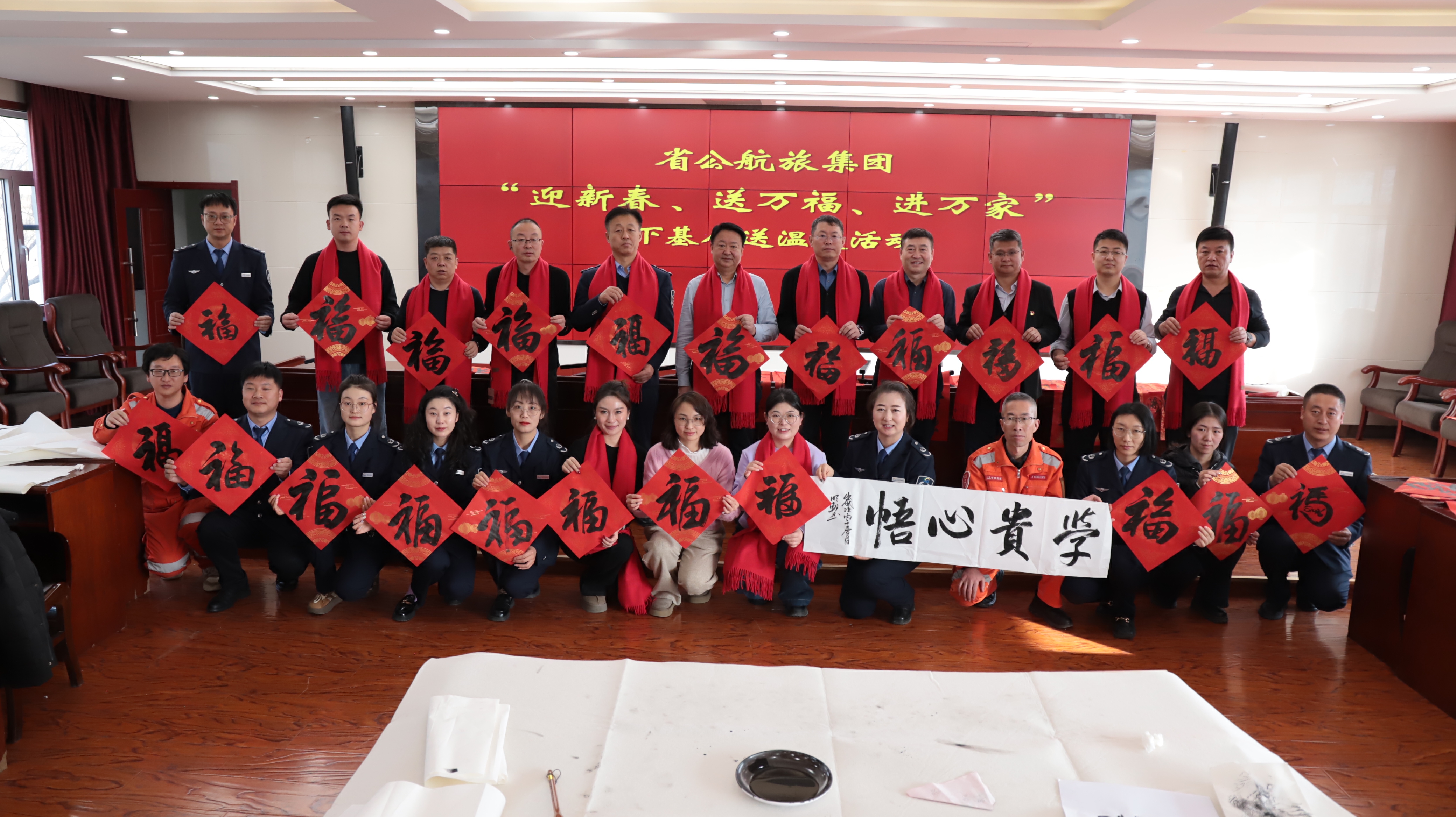 骐骥跃新途,春风送暖情。为传承弘扬中华优秀传统文化,营造欢乐、喜庆、祥和的新春节日氛围,将新春的问候和祝福送到职工心里,集团公司书画协会于近期组织协会成员举办“迎新春、送万福、进万家”下基层送温暖活动,以笔墨为媒、以文化为桥,为奋战在生产经营一线的职工及往来司乘人员,送上了一份份饱含深情的新春文化贺礼。